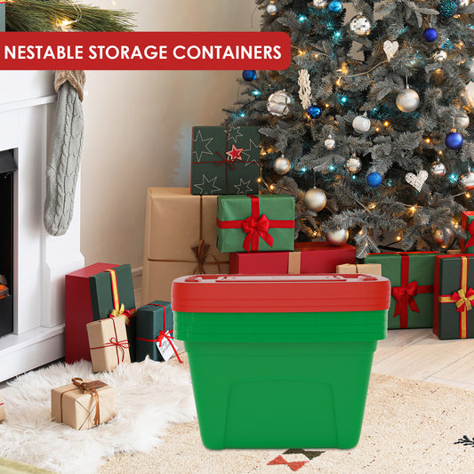 Simplykleen-4-Pack Christmas Storage Totes with Lids (Red/Green), 18-Gallon (72-Quart) Organization Bins, 25.50" x 17.00" x 15.25", Holiday Organizer, Plastic Storage Container Nearly Unbreakable Made in the USA