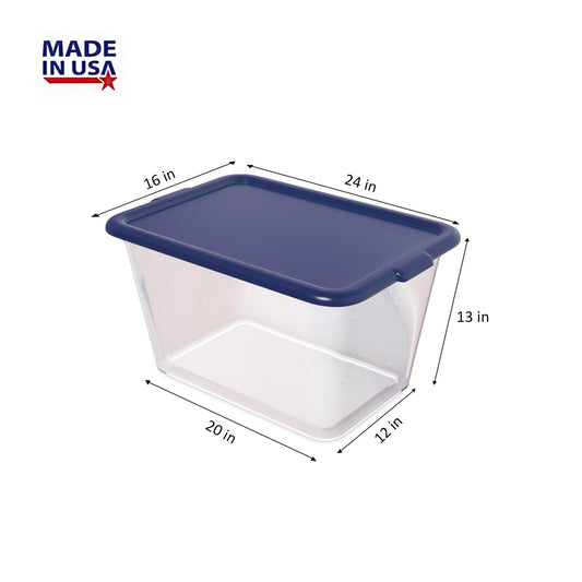 Simplykleen-14.5gal. Reusable Stacking Plastic Storage Containers with Lids, Navy Blue/Clear (Pack of 4)