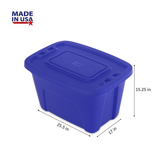 18Gal 72Qt Plastic Storage Containers Bins with Lids, Stackable Storage Bins, Nestable Organizer, Plastic Storage Totes for Christmas Holiday, Made in the USA (Blue, 4 Packs)