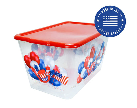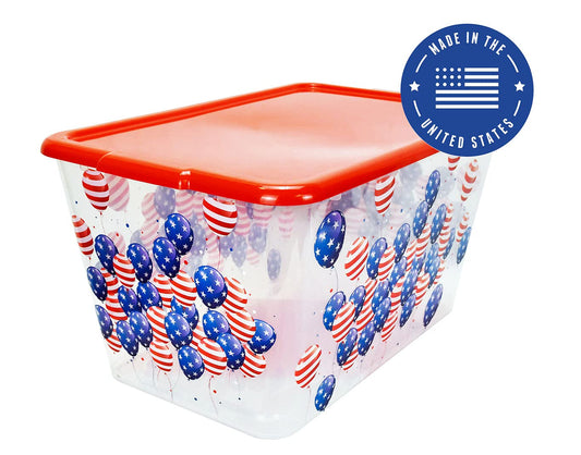 Simplykleen-14.5gal. Reusable Stacking Plastic Storage Containers with Lids, Patriotic Balloons (Pack of 4) Made in the USA