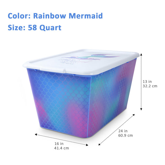 SIMPLYKLEEN 4-Packs 58-QT Plastic Storage Bins with Rainbow Mermaid Print Lids, Stackable Storage Container, Large Storage Totes for Organizing Closet, Dress, Made in the USA