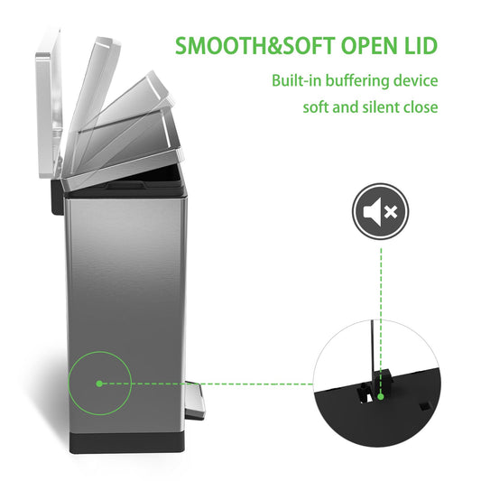 Kleen-Fit 7.9-Gallon 30 Liter Square Trash Can with Stainless Steel Foot Pedal, Heavy-Duty Garbage Can for Kitchen Home Office Living Room